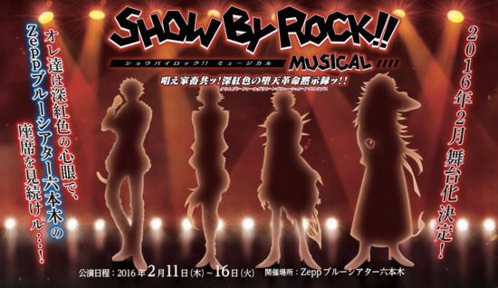 Sanrio opened a website on Friday to reveal that its Show By Rock!! mobile rhythm game is inspiring a stage musical in February 2016. The Show By Rock!! Musical ~Tonaeru Kachikudomo! Crimson Falldown Revolution Apocalypse~ play will run at the Zepp Blue Theater Roppongi in Tokyo from February 11-16, and it will host a total of 10 performances. The musical will feature the franchise's Shingan Crimsonz four-member visual kei band as the main characters.