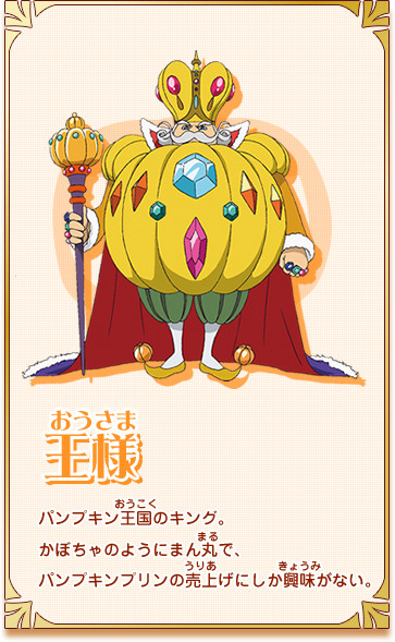"Pumpkin Ōkoku no Takaramono" (The Pumpkin Kingdom's Treasure) will be a cel-style anime in which the Precure girls set off to rescue a kidnapped princess. The story begins when Haruka and her friends are wrapped in a mysterious light and travel to the Pumpkin Kingdom.