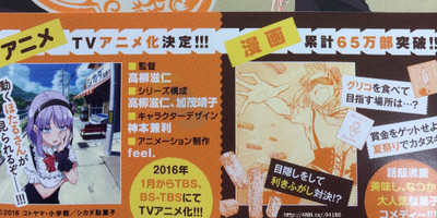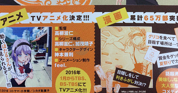 The third compiled book volume of Kotoyama's Dagashi Kashi manga is revealing the staff of the upcoming anime adaptation on Friday. It is also revealing the anime's January premiere on TBS and BS-TBS.