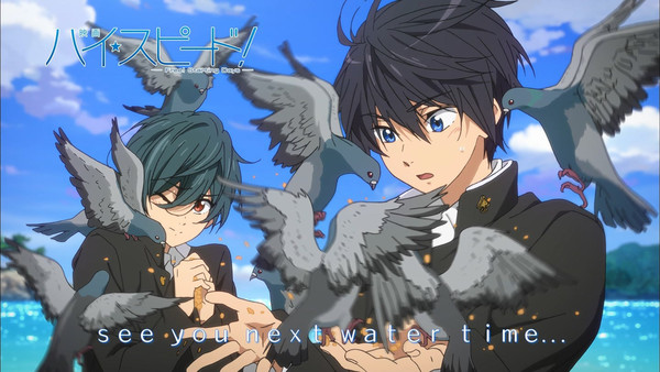 The encore airing of the second Free! television anime episode also featured a new end card illustration: