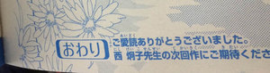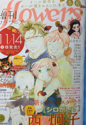 The December issue of Monthly Flowers also revealed that Nishi will launch a new manga series titled Shiro ga Ite (Shiro is Here) in Shogakukan's Zōkan Flowers magazine in its winter issue on November 14. The first chapter will be 60 pages long and will have a color opening page. The manga's art will also adorn the issue's cover.