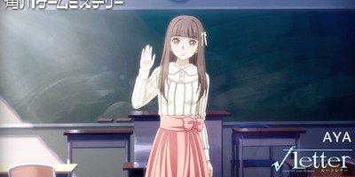 The official website of Kadokawa Games' upcoming √Letter (pronounced "Root Letter") PlayStation 4 and PlayStation Vita adventure game began streaming an English-subtitled video on Monday, introducing the "Mystery Actress" Aya, voiced by Noriko Hidaka.