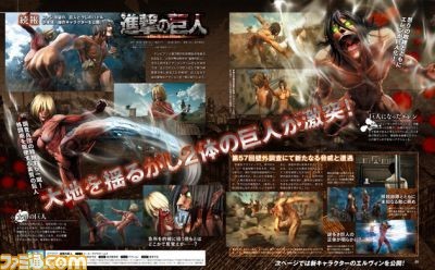 Kadokawa's Weekly Famitsu magazine is reporting more details on Koei Tecmo Games' Attack on Titan game this week. The game will feature Eren as a Titan, a female Titan, Erwin, and still more characters to be revealed.