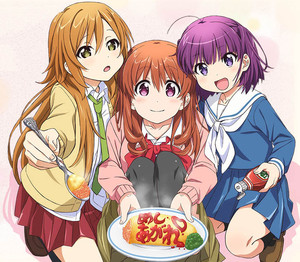 The series premiered in Japan last January. Puella Magi Madoka Magica and Monogatari series director Akiyuki Shinbo helmed Gourmet Girl Graffiti as chief director at SHAFT, and Naoyuki Tatsuwa (Nisekoi, Katteni Kaizō) directed the series. Mari Okada (Selector Infected Wixoss, AKB0048) was in charge of series composition, and Kazuya Shiotsuki (Nisekoi chief animation director, Madoka Magica animation director) designed the characters. Toshiki Kameyama served as sound director and Flying Dog was in charge of music.