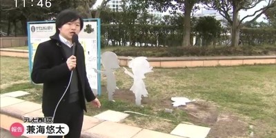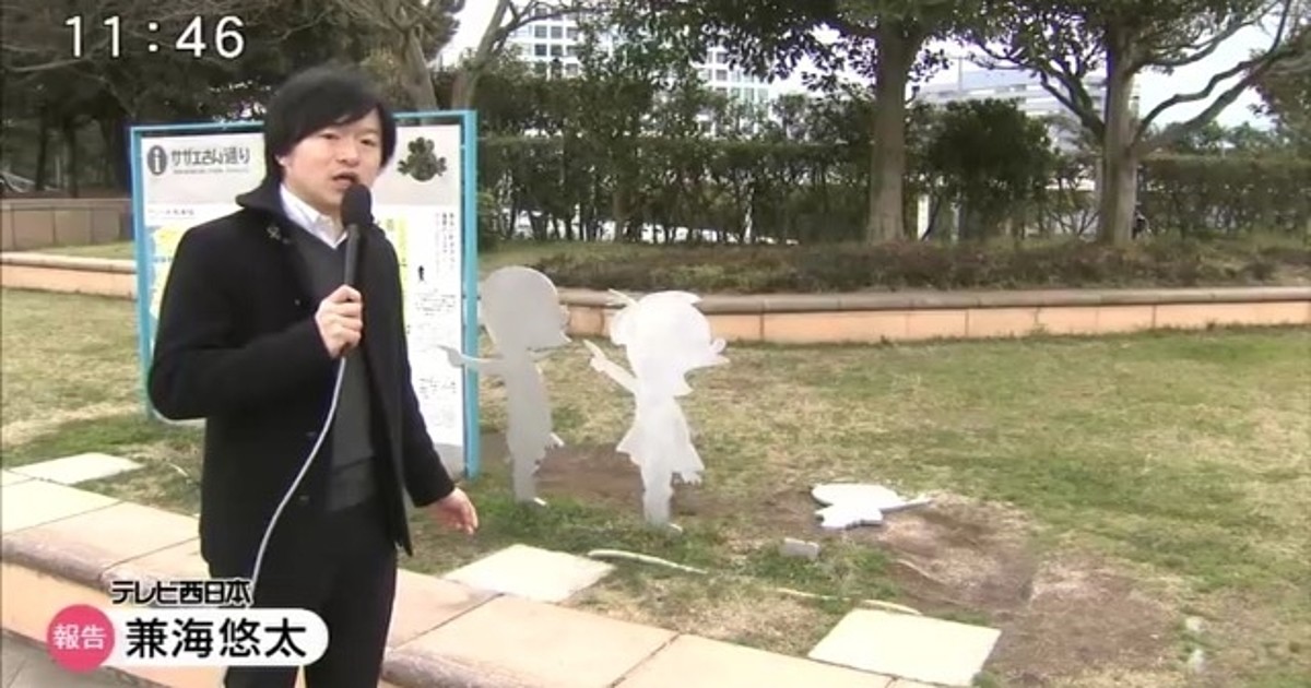 Television channel TV Nishinippon reported on its website on Tuesday that a statue of a character from the Sazae-san anime and manga series located in Fukuoka City was vandalized. The statue portrayed the silhouette of the character Tara-chan, and was found on Tuesday morning by a security guard stationed in the seaside park where the statue was located.
