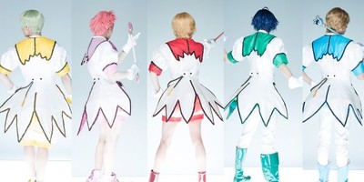Marvelous' official website for the stage play adaptation of the Cute High Earth Defense Club LOVE! anime updated on Thursday with visuals of the Earth Defense Club and Conquest Club cast members in costume in their transformation costumes (although each transformation costume features the actor facing away from the camera).