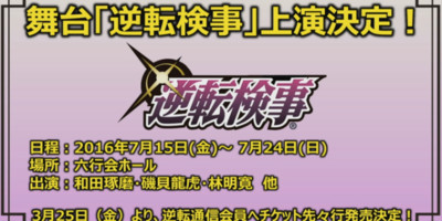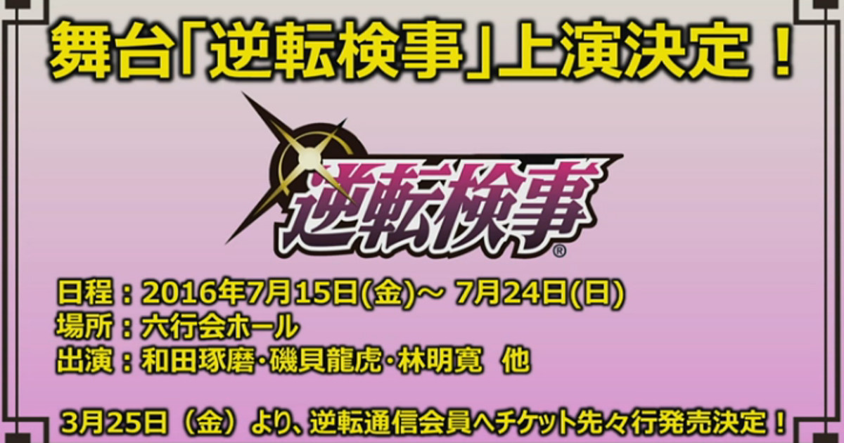 CAPCOM announced during a livestream event on Sunday that the Ace Attorney series will receive a third stage play adaptation titled Gyakuten Kenji (Turnabout Prosecutor) in July.