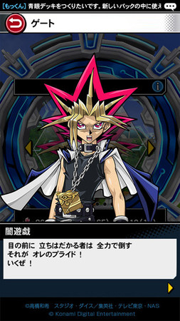The game will feature well-known characters from the Yu-Gi-Oh! franchise such as Yami Yugi, Seto Kaiba, Katsuya Jounouchi (known as Joey Wheeler in English), and Mai Kujaku (Mai Valentine). As players clear missions, they become able to use more characters. As the characters' levels increase, players obtain cards and the characters gain new skills.