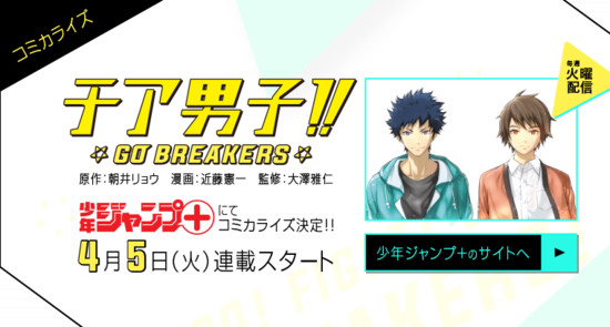 Kenichi Kondō will launch a manga adaptation titled Cheer Danshi!! GO BREAKERS on Shueisha's Shonen Jump+ app on April 5.
