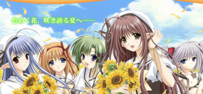 Agobarrier served as the scenario writer for Navel's Shuffle! (pictured at right) visual novel series (including Tick!Tack! and Really? Really!), the Tiny Dungeon series (including ~Black and White~ and Brave or Slave~), and Valkyrie Runabout among others. Shuffle! received a 24-episode television anime adaptation in 2005-2006, and the 12-episode Shuffle! Memories television anime in 2007.