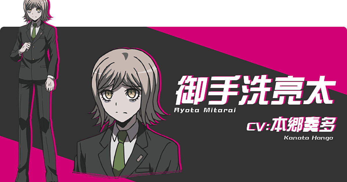 Hongou previously starred in the 2014 Danganronpa The Stage ~Kibō no Gakuen to Zetsubō no Kōkōsei~ stage play as Makoto Naegi. Hongou will also play Ryōta Mitarai in the "Zetsubō Hen" part of the anime, but the character will have a different look: