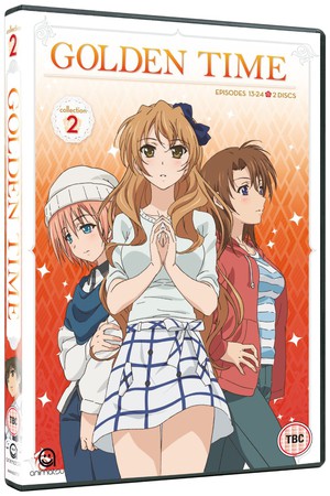 Animatsu will release the second volume of the series Golden Time on both Blu-ray and DVD, carrying parts 13 to 24. The school romantic comedy of Golden Time revolves around Banri Tada, a college student who lost all of his memories before his high school graduation. The story follows Banri, Kōko Kaga (a girl whose seemingly perfect looks belies her hidden regrets), Kōko's significant other Mitsuo Yanagisawa, and other students at Banri's college in Tokyo.