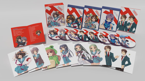 The Ultimate Collector's Edition will include the contents of the standard edition, as well as The Melancholy of Haruhi-chan Suzumiya, Nyorōn Churuya-san, and The Disappearance of Nagato Yuki-chan anime, as well as a filler box with art cards featuring the series' characters. Funimation notes that the filler box "happens to be about the same size as a Blu-ray case and can be removed to fit something else…"