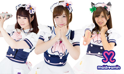 Ayame, Hinata, and Mariru are the three top maids of the Maidreamin maid cafe restaurant. The Maidreamin maid cafe chain began in Akihabara in 2008, and now has 17 locations. They will participate in the convention's Maid Cafe event, appearing in the first two shows each day at 10:00 a.m. and 1:00 p.m.