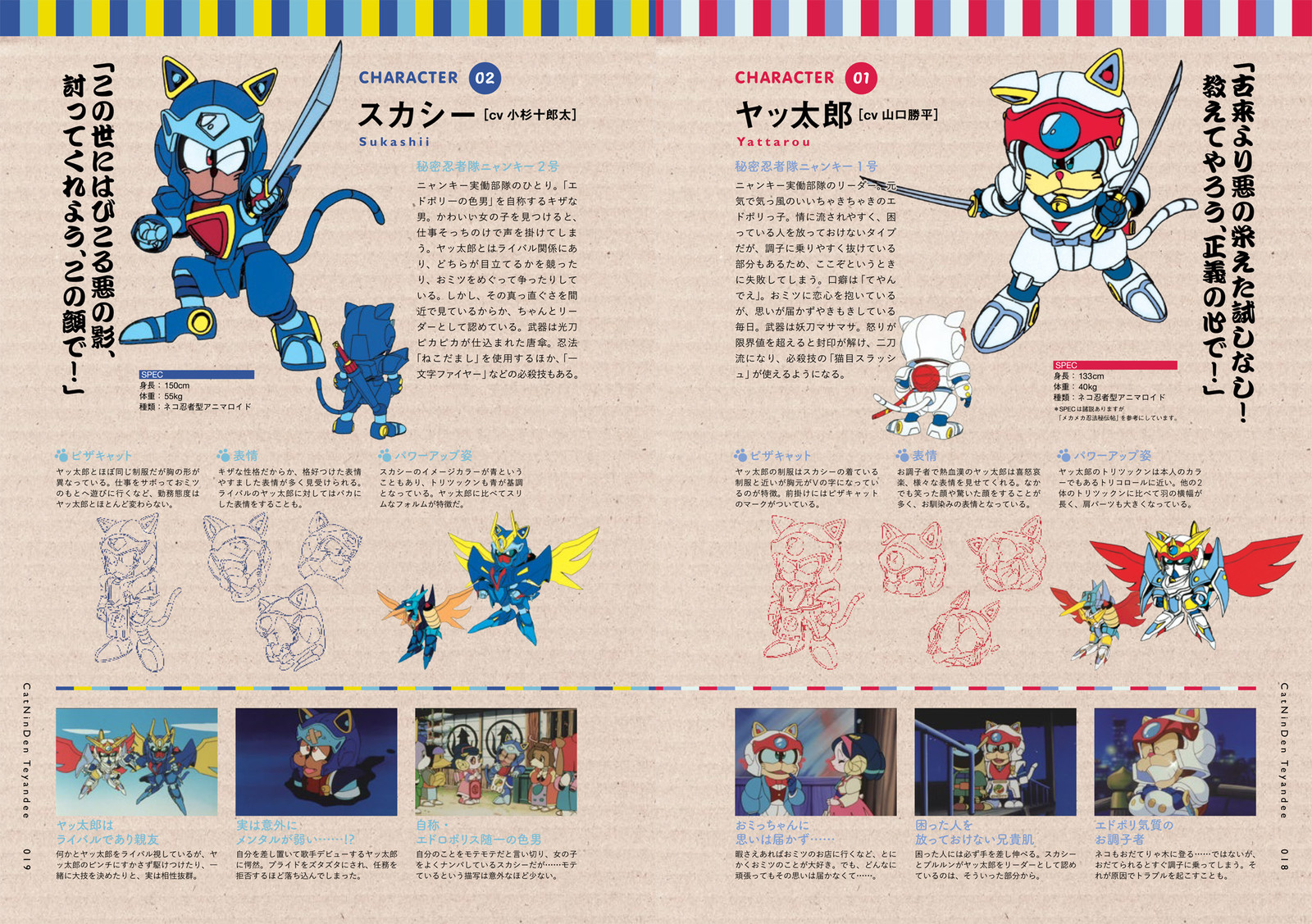 Licensed by Tatsunoko and Japanese publisher Ichijinsha, this book will bring back all the memories for the fans of the wacky cartoon series know as Samurai Pizza Cats (Kyatto-Ninden Teyandee in Japanese). The 144 page book collects design drawings, illustrations, and a lot of behind the scenes information from the Japan version of the TV series.