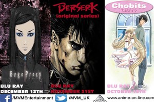 MVM Entertainment has tweeted that it will release Blu-rays of three anime titles which it had previously released on DVD: Chobits on October 10, the 1997 TV version of Berserk on November 21; and Ergo Proxy on December 12.