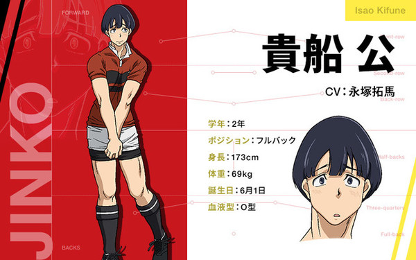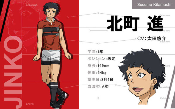 Yūsuke Ōta as Susumu Kitamachi, a first-year who is inexperienced at rugby and has no position yet. He loves to face new challenges. He admires Sekizan and does his best to build his body.