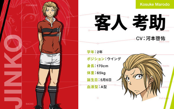 Kensho Ono as Etsugo Ōharano, a first-year student who plays the stand-off position. He has been playing since elementary school, so he is good if cocky. He is always defiant. His little brother has been playing as long as he has. Ono noted that he himself joined a rugby club when he was little.