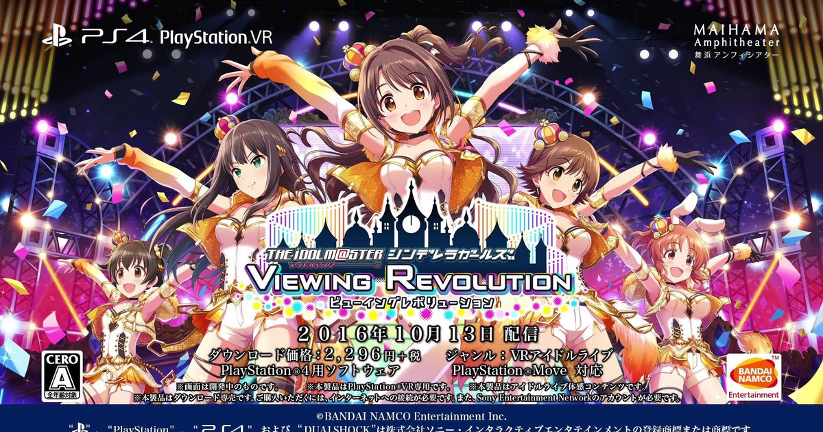 Bandai Namco Entertainment posted a promotional video to introduce The IDOLM@STER Cinderella Girls Viewing Revolution, a virtual reality idol concert experience for the PlayStation VR system. The experience creates a "never-before-seen magical stage" concert at the Maihama Amphitheater (the site of the franchise's first live concert in real life).