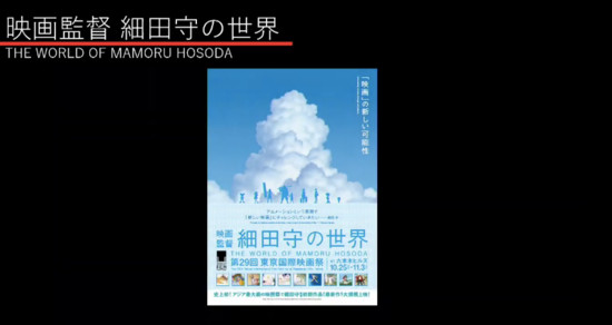Additionally, this year's festival will host a "World of Mamoru Hosoda in Animation Focus" event, which will feature the following works by Hosoda: The Boy and The Beast, Wolf Children, Summer Wars, The Girl Who Leapt Through Time, Digimon Adventure (Digimon Adventure: Born of Koromon), Digimon Adventure Our War Game (Digimon Adventure: Bokura no War Game), Superflat Monogram, The Creatures from Planet 66 ~Roppongi Hills Story~ (collaboration with Takashi Murakami), Magical Do Re Mi (Ojamajo Doremi DOKKAAN!) episode 40, and Nadja opening and ending sequences.