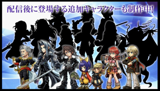 Square Enix also confirmed that new characters will join the game, including Galuf Halm Baldesion (Final Fantasy V), Sephiroth (Final Fantasy VII), Squall (Final Fantasy VIII), Eiko (Final Fantasy IX), Shantotto (Final Fantasy XI), Vanille (Final Fantasy XIII), and Ace (Final Fantasy Type-0).