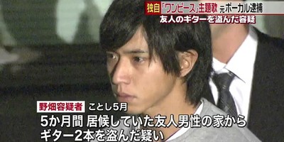 According to police, Nohata stole two guitars (valued at 200,000 yen or about US$1,833 total) from his friend and roommate in Tokyo's Toshima ward between May 17 to 27.