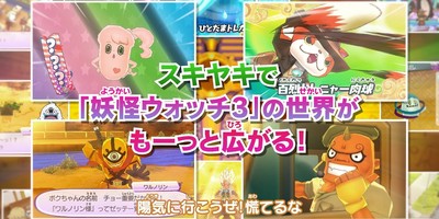 Level-5 began streaming a promotional video for the Yo-kai Watch 3: Sukiyaki Nintendo 3DS game on Tuesday. The video previews the game's theme song "Banzai! Aizenkai!" by King Cream Soda, who also performed the "Geragerapō no Uta" theme song of the Yo-kai Watch television anime.