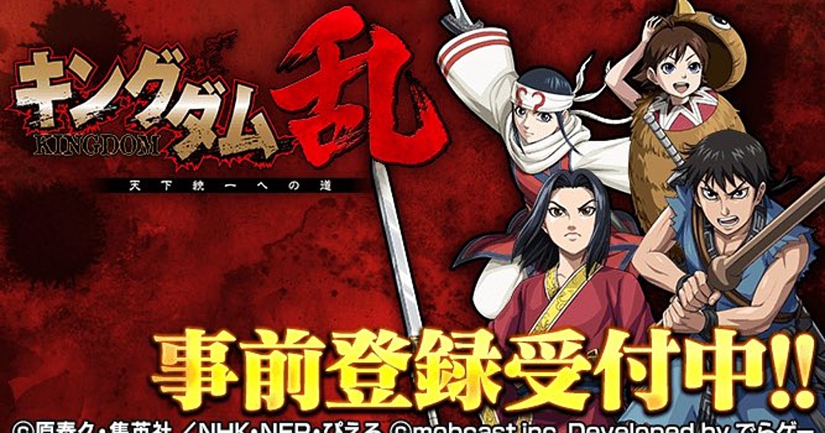This year's 15th issue of Shueisha's Weekly Young Jump Magazine announced on Thursday that Mobcast is developing a smartphone game based on Yasuhisa Hara's Kingdom manga. The game, titled Kingdom Ran -Tenkatōitsu e no Michi- (Kingdom War -Road to Unification-), is slated to launch this summer for iOS and Android devices. The official website is currently accepting pre-registrations for a pre-launch campaign with in-game bonuses.