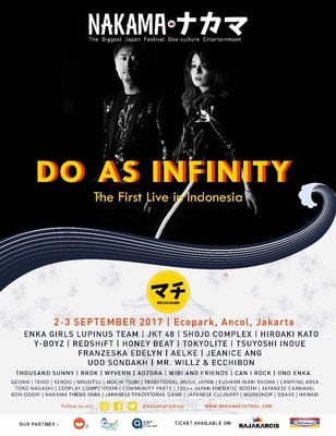 Jakarta's Nakama Festival event announced on Wednesday that it will host rock band Do as Infinity. The group will perform in Indonesia for the first time.