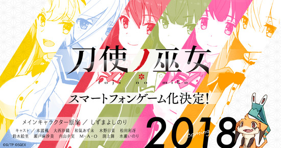 The official website for Studo Gokumi's original anime project Toji no Miko (The Shrine Maiden Swordwielders) announced on Friday that the anime is getting both a manga adaptation and a smartphone game (pictured below).