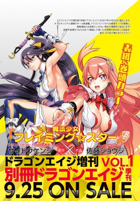 Writer Kenji Saito (Trinity Seven) and artist Shoji Sato (Triage X) are collaborating on a new series, pictured right, that will feature on the first volume's cover. The manga's title is Mahō Shōjo Flaming ☆ Star (Magical Girl Flaming Star).