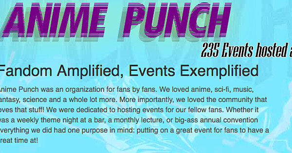 The Columbus, Ohio-based organization grew out of events held at Ohio State University. The first Anime Punch convention for non-OSU students was held in 2005, and the organization also held yearly events called "Armageddicon." The staff have since hosted a number of spinoff events such as Fieldcon, and in 2008 it was the first convention to use RFID technology to track attendance.