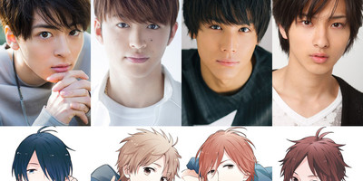 The film's cast includes, from left to right in the image above, Mahiro Takasugi as Tsuyoshi Naoe, Reo Sano (of the band GENERATIONS from EXILE TRIBE) as Natsuki Hashiba, Taishi Nakagawa as Tomoya Matsunaga, and Ryūsei Yokohama as Keiichi Katakura.