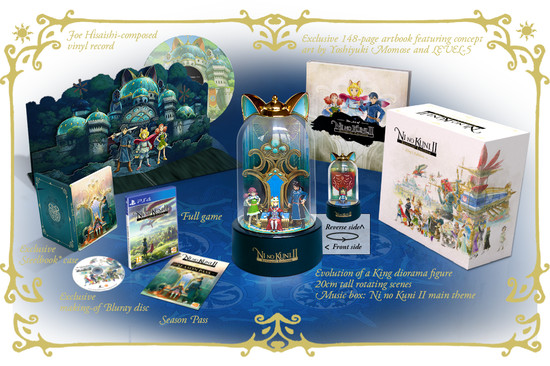 The game's "King's Edition" in Europe comes with a season pass for all future DLCs, a "Prince's Equipment pack" for digital in-game items, a steelbook case, an animated music box, a vinyl record including the game's main theme by Joe Hisaishi, an artbook, and a making-of Blu-ray Disc.