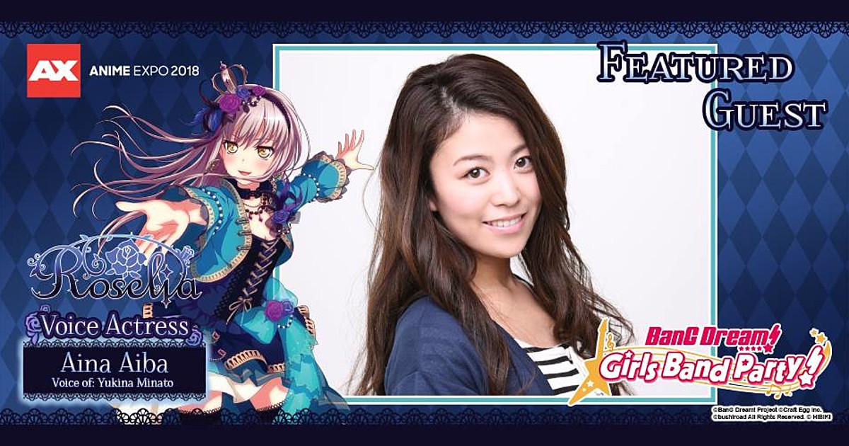 Bushiroad announced on Wednesday that it will host voice actress Aina Aiba as a guest for the Anime Expo convention. Bushiroad will also showcase the BanG Dream! Girls Band Party! game and the Love Live! franchise at its booth in the convention.