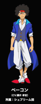 Takahiro Sakurai as Bacon, a member of the Supreme group. Bacon's Zoid is a Sabre-toothed Tiger type.![]()