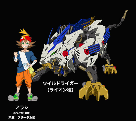 Kenshō Ono as Arashi, a member of the Freedom group. Arashi's Zoid is the Wild Liger, a Lion type.![]()