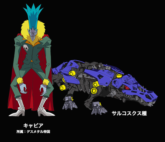 Other characters include Caviar, a member of the Death Metal Empire. Caviar's Zoid is a Sarcosuchus type.