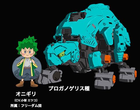 Etsuko Kozakura as Onigiri, a member of the Freedom group. Onigiri's Zoid is a Proganochelys type.![]()