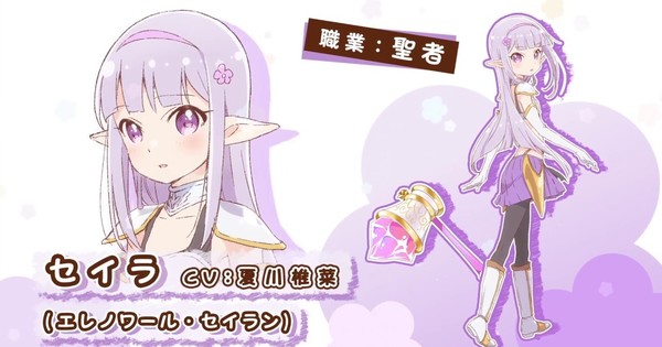 The official website for Studio Gokumi's original television anime Endro~! began streaming its second character promotional video on Thursday. The video previews the character Seyla (Elnowar Seylan, spelling not confirmed), voiced by Shiina Natsukawa. Seyla is a very serious young woman and serves as the party's straight man. She is a holy elf and is good at taking care of others, but is bad at housework. She has bad eyesight but does not wear glasses, and cannot use a bow.