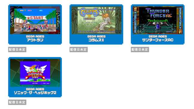 Thunder Force AC and Sonic the Hedgehog 2 will feature an online ranking, Thunder Force AC will also include an easy mode, and Columns II will feature online battles. Out Run will feature background music and other features from the Nintendo 3DS version.