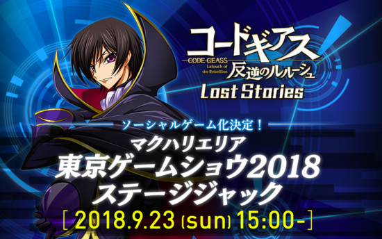 The official Twitter account for the Code Geass franchise revealed more details on Sunday for the previously teased Code Geass game project by DMM Games. The game is titled Code Geass: Lelouch of the Rebellion Lost Stories, and it will be a social game. The staff will reveal more information about the game during a stage presentation at Tokyo Game Show on September 23 at 3:00 p.m. JST (2:00 a.m. EDT).