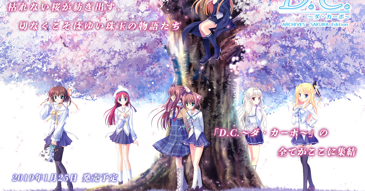 The company also revealed on Sunday that it is releasing the D.C. Da Capo Archives Sakura Edition game collection on January 25, 2019. The game collects all 21 titles in the Da Capo franchise, and will be available for Windows 7, 8, and 10. The collection retails for 29,800 yen (about US$265).