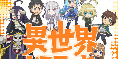 Kadokawa opened a website on Saturday to reveal a new anime project titled Isekai Quartet. The anime will be "broadcast" in spring 2019, and will be a crossover series featuring characters from the Overlord, Konosuba - God's Blessing on This Wonderful World!, Re:ZERO -Starting Life in Another World-, and Saga of Tanya the Evil franchises. The anime will feature the characters in super deformed form.