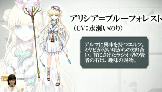 Voice actresses Ai Kayano (Lord of Vermilion: The Crimson King's Shōko Hanashima, Land of the Lustrous' Diamond) and Ayana Taketatsu (K-ON!'s Azusa Nakano, Sword Art Online's Suguha Kirigaya), Straight Edge's Kazuma Miki, and Square Enix's Hiroaki Iwano appeared at the event.