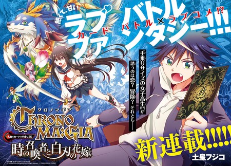 Fujiko Dosei's Chrono Ma:gia -Toki no Shōkansha to Shiraha no Hanayome manga (pictured right) launched in Weekly Shonen Sunday on April 18, and Shogakukan confirmed in September that the manga had ended in June due to Dosei's poor health. The manga's one compiled volume shipped on September 18.