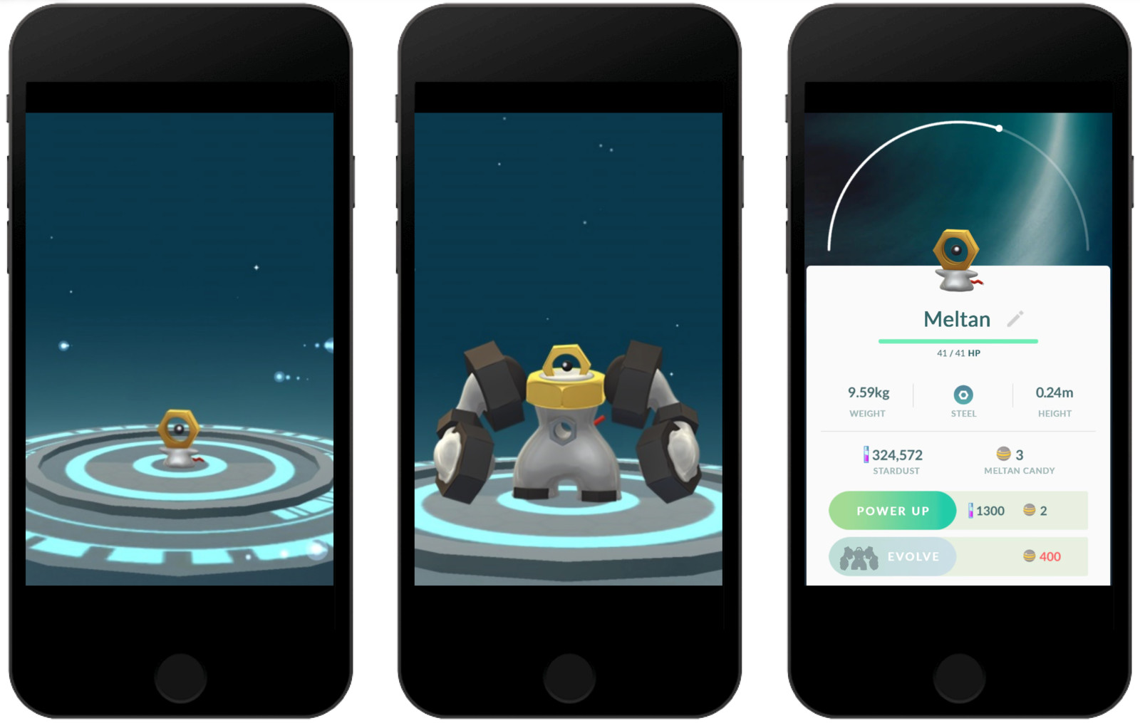 Melmetal was first teased in a promotional video earlier this month, and it is the first Mythical Pokémon with the ability to evolve. Many Meltan combine together to form Melmetal. Meltan will only evolve to Melmetal in Pokémon GO, and players must obtain 400 Meltan Candies in order to evolve it.
