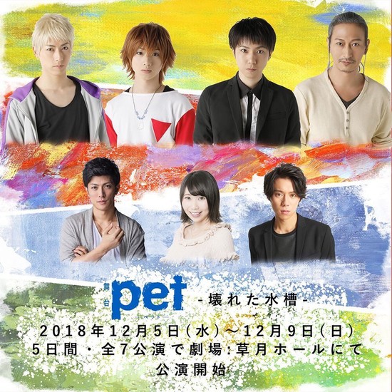 Yūsei Naruse is serving as executive producer on the stage play. Naohiro Ise is directing and writing the play's scripts. Office Invader is producing the play. The anime is credited as collaborating on the project. The first stage play, Pet: Kowareta Suisō (The Broken Water Tank), will run in Tokyo from December 5-9. The second stage play, Pet: Niji no Aru Basho (The Place Where the Rainbow Is) will run in 2019.