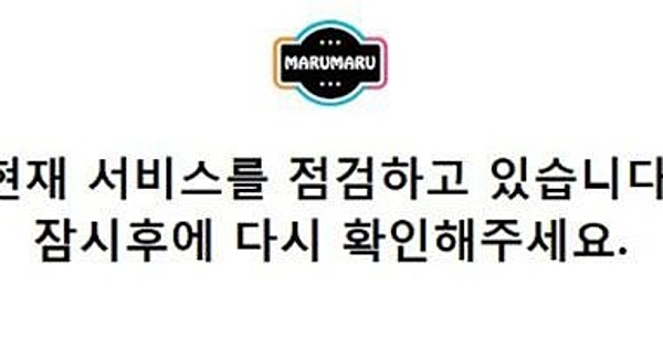 The South Korean website Marumaru, which illegally reproduced and translated Japanese manga and earned revenue through advertising, shut down on Tuesday. A message (seen right) posted on the website read, "Service maintenance is currently underway. Please check back again later."