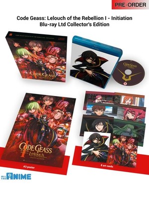 Anime Limited will also release a Blu-ray edition of Code Geass: Lelouch of the Rebellion I – Initiation (Code Geass: Hangyaku no Lelouch - Kōdō). This is exclusively available to the AlltheAnime.com and Zavvi.com websites. It includes art cards and an A3 poster.